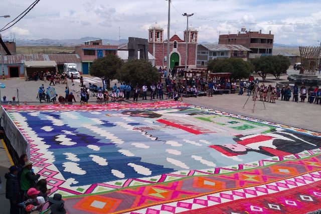 El Telar más grande del mundo, con iconografías culturales cusqueñas, se elaboró en la plaza principal del distrito de Pallpata, en la provincia de Espinar, región Cusco, y logró ingresar al Guinness World Records.