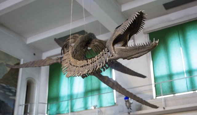 Paleontólogos locales presentaron este miércoles en Argentina la réplica de un plesiosaurio hallado en 2009 en los lagos de la Patagonia (sur), donde este reptil marino vivió hace 65 millones de años.