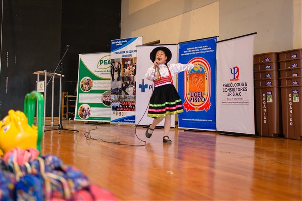 En la ceremonia de clausura del PEA, Jhannis Quintanilla y Evanllely Checcllo, estudiantes de 5 años de la Institución Educativa Inicial “Angelitos de Dios”, de Paracas, fueron ovacionadas tras presentar la canción “Cuidemos el medio ambiente”, basada en la melodía del tema infantil “La Vaca Lola”, que las consagró como ganadoras del concurso de Eco Cantos, categoría inicial. Angélica Nolberto, alumna de 8 años del colegio Hilda Bringas Quintanilla, también ganó en Primaria con la composición “Cuido mi planeta”, tema compuesto por su abuelo Toribio Rodríguez.