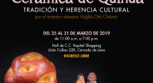 La asociación de artesanos manos creadoras, inaugurará la exposición “Cerámica de quinua, tradición y herencia cultural” del maestro artesano Virgilio Oré, este lunes 25 de marzo a las 7:00 p.m. en el hall del centro comercial Kapital Shopping (Jirón Callao 220, Cercado de Lima). Ingreso Libre Con este proyecto el artista pretende dar a conocer […]