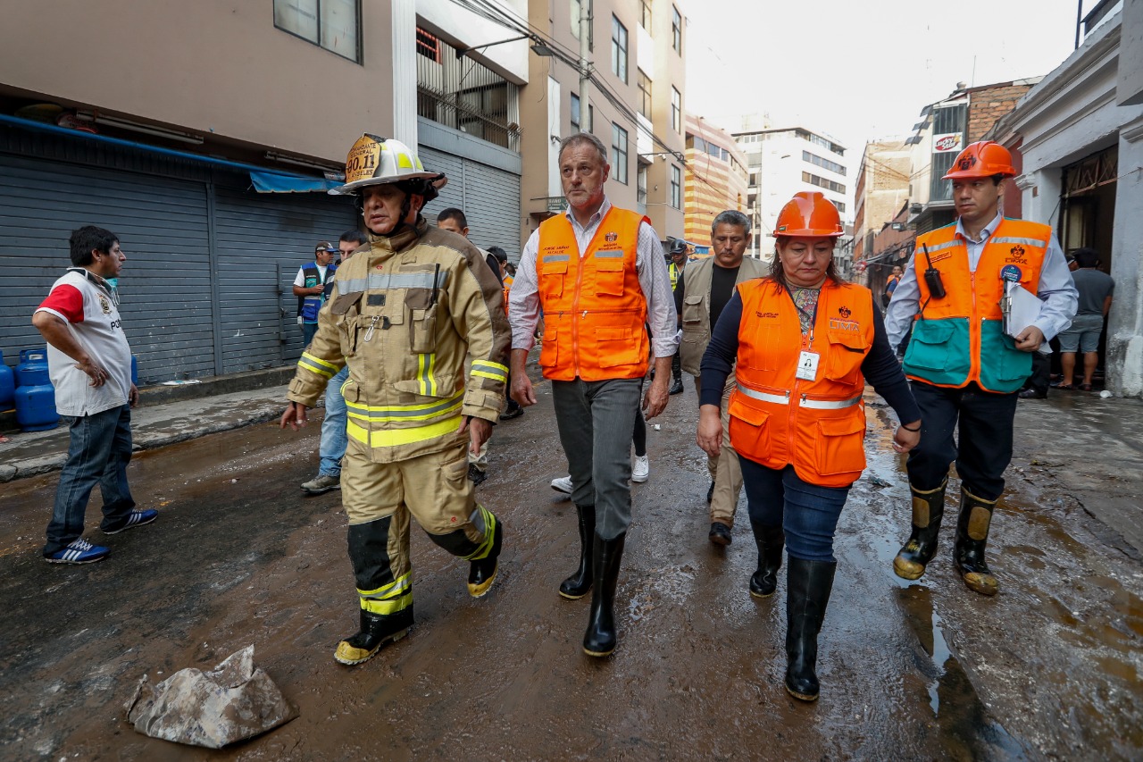 Hasta el momento, la Municipalidad de Lima ha dispuesto de personal en la zona para las labores de limpieza, adicionalmente, de maquinaria pesada para la remoción de escombros: 4 volquetes, 1 cargador, 1 minicargador y 30 operarios. Todo ello, como parte del trabajo coordinado con el cuerpo de bomberos.
