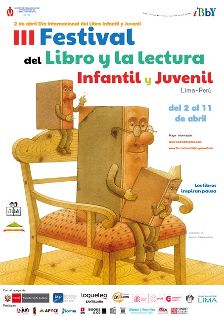El evento, organizado por el Centro de Documentación e Información de Literatura Infantil – CEDILI IBBY PERÚ, se realizará del 2 al 11 de abril en distintos espacios culturales de Lima. Entre las actividades que se realizarán en el Museo Metropolitano de Lima (Biblioteca Metropolitana de Lima y en los jardines en la parte externa) y el Parque La Muralla encontramos exposición de libros tridimensionales, picnics, cuentacuentos y encuentros de autor.