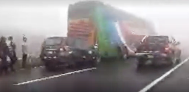 Un sereno de Aucallama, Frank Fernández Méndez, indicó que el primer choque, que fue múltiple, se debió a la densa neblina de la zona.