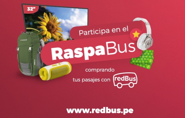 Gracias a Raspabus, quienes adquieran pasajes de bus a través de la app de redBus (disponible para Android o iOS) desde el 15 hasta el 31 de julio podrán jugar el Raspa y Gana y tendrán la oportunidad de ganar diversos premios, como televisores, parlantes, mochilas de viaje y más.