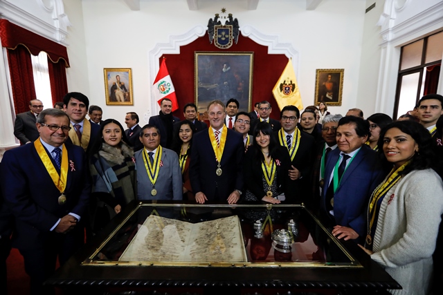 Los actos protocolares iniciaron en la cripta Panteón de los Próceres, dentro de la antigua iglesia del Real Colegio de San Carlos, actual Centro Cultural de la Universidad Nacional Mayor de San Marcos (UNMSM), ubicado en el Parque Universitario.
