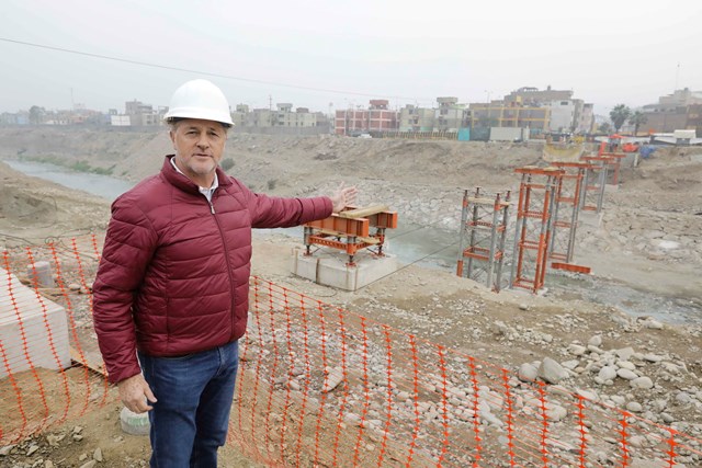 Lima, 15 de octubre de 2019.- Las obras del puente peatonal «Malecón Checa», que viene ejecutando la Municipalidad de Lima, a través del Programa de Gobierno Regional de Lima Metropolitana, cuentan con un 60% de avance, cifra por encima de lo proyectado (44%), informó el alcalde Jorge Muñoz.