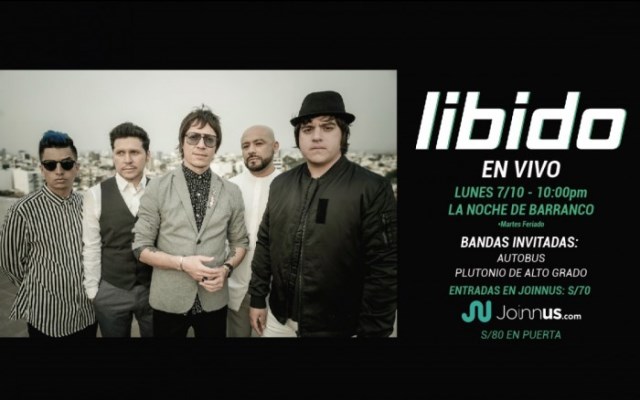 Aprovechando el feriado del martes 8 de octubre, Libido regresa a La Noche de Barranco para entregar un concierto vibrante en un viaje por gran parte de su discografía, desde los clásicos hasta las nuevas canciones. El costo de entradas es de S/ 70 en Joinnus y S/80 en puerta. *El ingreso es para mayores de 18.