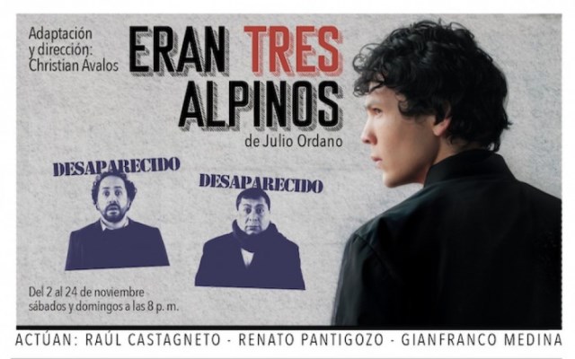Te invitamos a ver la puesta en escena de «Eran Tres Alpinos». Son las 3:33 a. m. y Bobo y Russo están esperando un Enatru en la vía Expresa, cuando son abordados por Pedro, quien los acompaña en ese sombrío paradero. Su repentina aparición pone en alerta a Russo, pero Bobo cree que es solo un paseante que quiere un poco de conversación sin sospechar que sus verdaderas intenciones son otras. Eran tres alpinos, de Julio Ordano, es adaptada y dirigida por Christian Ávalos y cuenta con las actuaciones de Raúl Castagneto, Renato Pantigozo y Gianfranco Medina.