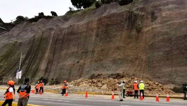 El incidente se produjo luego de que las geomallas instaladas en el acantilado cedieran a la presión, tras lo cual cayó gran cantidad de rocas y tierra.