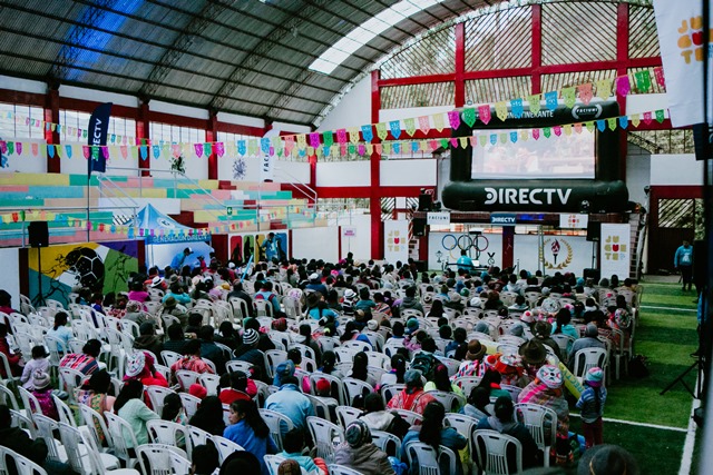 Lima, 18 de noviembre. – DIRECTV, la compañía que provee la mejor experiencia de entretenimiento con tecnología de alta calidad, junto a la organización Juguete Pendiente, brindaron a los pobladores de la comunidad de Lares en Cusco la oportunidad de disfrutar por primera vez, una película en formato de cine. Gracias al programa de RSE “Faciuni” y su proyecto “Cine Itinerante”, más de 600 pobladores pudieron disfrutar de la película “Coco”, la cual fue proyectada en una pantalla gigante instalada en el coliseo de Lares.