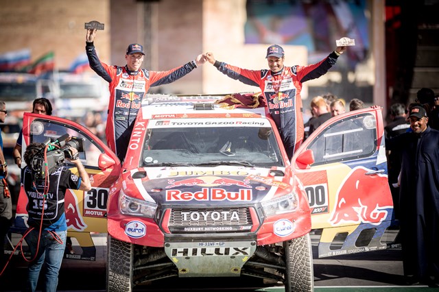 Nasser Al-Attiyah: «Ha sido una gran carrera. Nos hemos divertido mucho y hemos disfrutado un montón. La pelea con Carlos (Sainz) y Stéphane (Peterhansel) ha sido dura. Había tres pilotos en la cabeza que lo estaban dando todo por ganar. Felicito a Carlos y a Stéphane porque han hecho una gran carrera”.