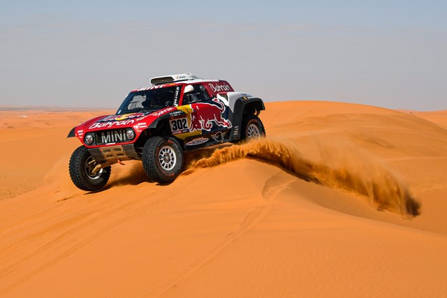 Carlos Sainz, dos veces ganador del Dakar, continúa líder en la categoría de coches, una posición que ostenta desde el final de la tercera etapa. Su compañero de equipo, Stéphane Peterhansel, que también conduce un Mini Buggy va tercero de la general, a 16 minutos del español. Entre ambos pilotos se encuentra el actual campeón del Dakar, Nasser Al-Attiyah, a ocho minutos de la cabeza.