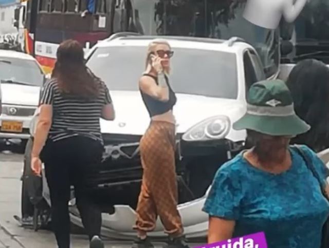 Leslie Shaw, intérprete del tema «La Faldita» quedó con la camioneta destrozada tras ser chocada por una combi, sin embargo ella no sufrió daño alguno.