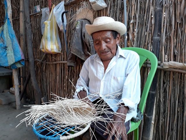 Don Manuel nos cuenta que el tejido con paja fina era una actividad rentable hace 70 años, pero hoy, ya no. Es viudo y tuvo solo dos hijos, varón y mujer. Actualmente vive con su único hijo, su nuera y sus cinco nietos. Su única hija ya falleció.