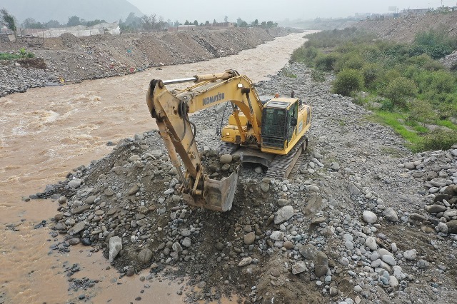 Con excavadoras, cargadores frontales y volquetes, la maquinaria del Programa Nuestras Ciudades (PNC) del MVCS ha venido removiendo piedras, lodo y material aluviónico para que el agua de los ríos pueda discurrir. De esta manera, se busca evitar que durante la temporada de lluvias, haya desbordes que afecten a la población que vive cerca de las quebradas.