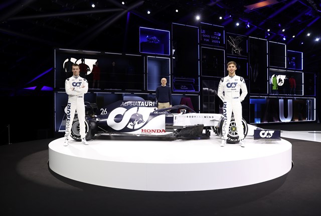 El coche de F1 Scuderia AlphaTauri Honda fue presentado ante más de 500 invitados y representantes de los medios de comunicación en su lanzamiento en el Hangar-7 en el aeropuerto de Salzburgo, Austria.