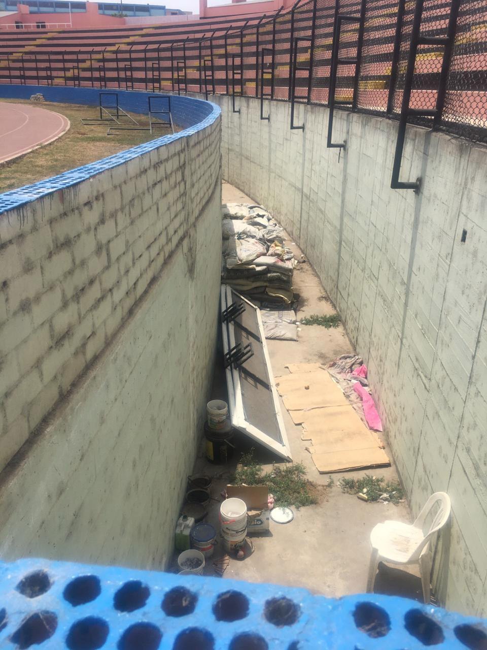 Igualmente se encontraron los cables eléctricos expuestos de manera precaria en los equipos de alumbrado en la zona de los pasadizos de acceso al campo deportivo. Las vías de circulación y evacuación presentan huecos en algunos tramos.