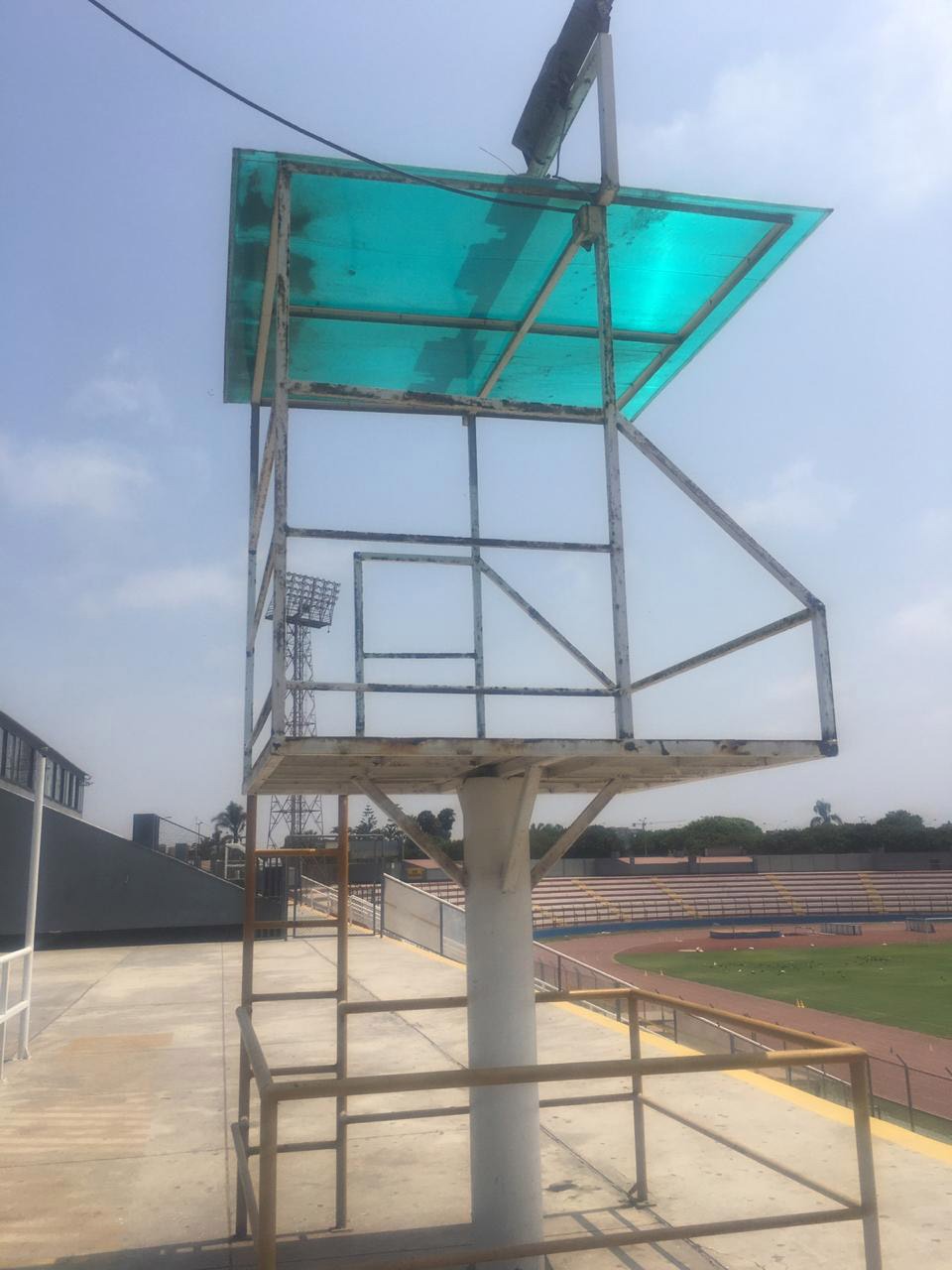 Las estructuras metálicas de las torres de vigilancia y las mallas alrededor del estadio se encontraban sin mantenimiento, oxidadas y expuestas. El recinto deportivo no contaba con extintores, ni iluminación de emergencia en los principales túneles de acceso y salida.