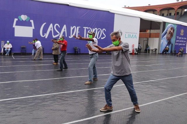 Desde las 9 a.m. hasta las 12 m., adultos y adultos mayores de la Casa de Todos participan de clases de taichí. Asimismo, reciben clases diarias de gimnasia básica, ajedrez y tenis de mesa, con una duración de 45 minutos cada una, a cargo de los profesores de las escuelas deportivas de la Municipalidad Metropolitana de Lima.