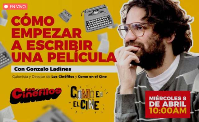 ¿Quieres aprovechar tu tiempo para comenzar a escribir una película? Gonzalo Ladines, co-creador de Los Cinéfilos (más de 14millones de vistas acumuladas) y director/escritor de la comedia Como en el Cine (ganadora Mejor Película Studio 35 Comedy Film Festival y Premio de la Audiencia en el Festival NewFilmmakers LA) enseñará sobre su proceso de escritura y una introducción a teoría. Interactuará con los alumnos y responderá sus consultas. CHARLA DE 1 HORA