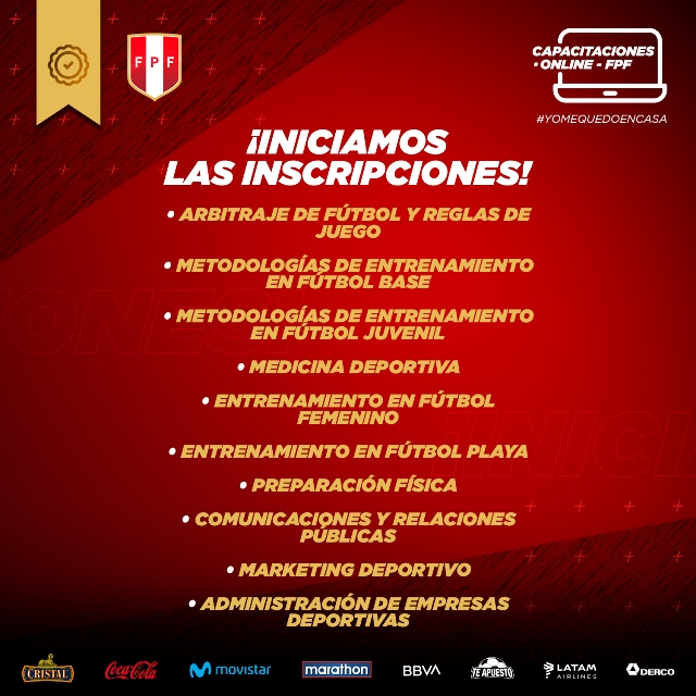 FPF: A partir de este 22 de Junio, la Capacitación Online FPF abre las inscripciones para un nuevo grupo de cursos sobre fútbol y temáticas deportivas, dictadas por profesionales de la Federación Peruana de Fútbol (FPF) y miembros de los equipos de trabajo de las diferentes selecciones nacionales.
