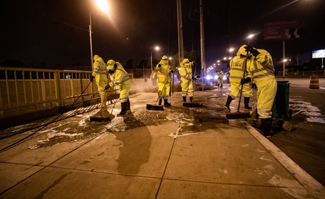 Estos trabajos forman parte de un cronograma que la Municipalidad de Lima viene ejecutando con el objetivo de desinfectar la infraestructura y mobiliario urbano de las vías principales, que concentran gran cantidad de ciudadanos.
