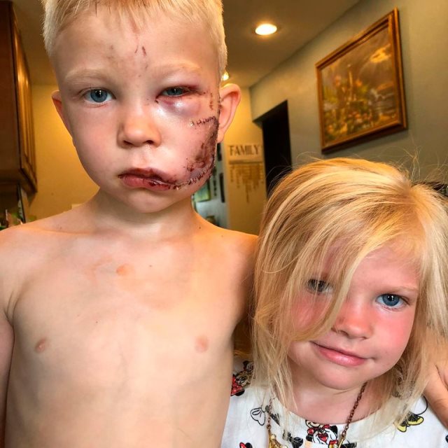 “Mi sobrino Bridger, de seis años, salvó la vida de su hermanita poniéndose entre ella y un perro que atacaba. Después de ser mordido varias veces en la cara y la cabeza, tomó la mano de su hermana y corrió con ella para mantenerla a salvo”, narró Nicole Walker en Instagram, junto a fotos de los dos pequeños en la ciudad de Cheyenne, en Wyoming (EEUU).