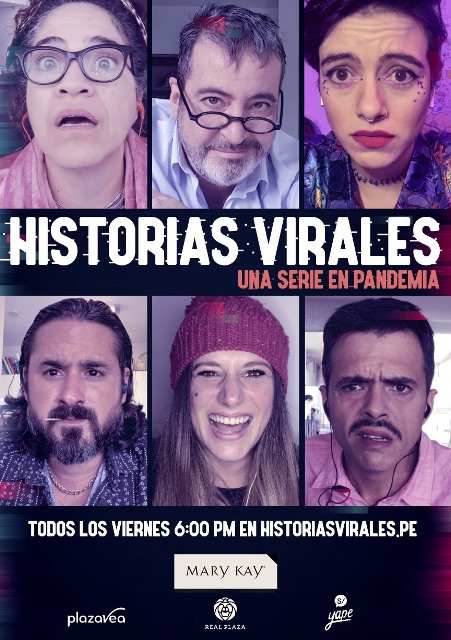 HISTORIAS VIRALES nos presentará tres historias que, en paralelo, nos mostrarán de manera divertida las consecuencias de la cuarentena. Como en LOS ESCUDERO, una familia limeña que se ‘saca los trapitos al aire’ en plena pandemia. Papo Escudero, un padre en estado de parálisis, convoca de manera virtual a toda su familia para repartir la herencia, aunque esto solo servirá como excusa para revelar los secretos más guardados; en LA COMUNIDAD conoceremos a Rafael, un falso gurú y su asistente quienes fundan una comunidad espiritual. Las pasiones carnales y la ambición por el dinero se entremezclan con la búsqueda de la verdad y el camino de la paz interior que todo ser humano anhela; y en ASTURIAS IMPORT, que -solía- ser una empresa peruana – española de importaciones de la China, ya que la pandemia dejó a toda la oficina sin trabajo. Los colaboradores se unen y deciden llevar a cabo su propio emprendimiento. Nacerá entonces MI MASCARILLA, una empresa dedicada a la creación y distribución de mascarillas personalizadas. Todo va viento en popa, pero las envidias y competencias de algunos miembros pondrán en peligro el crecimiento del nuevo negocio.
