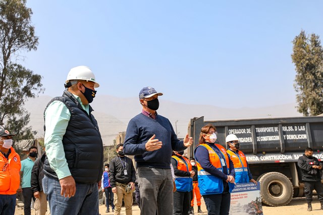 Acompañado de Manuel Campos, alcalde de Chaclacayo, Jorge Muñoz verificó las acciones que en conjunto realizan la Municipalidad de Lima, la Municipalidad Distrital de Chaclacayo y el Ministerio de Vivienda, Construcción y Saneamiento.