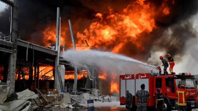Una gran humareda negra que se eleva sobre el puerto es visible desde toda la ciudad y los bomberos y equipos de la Defensa Civil libanesa están en el lugar extinguiendo el fuego.