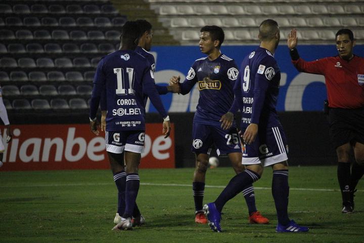 Sporting Cristal: Solís; Cabello, Merlo, Revoredo, Madrid; Távara, Gonzales; Corozo, Sandoval; Olivares y Herrera.