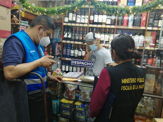 En la cuadra 9 del jirón Ayacucho fueron intervenidos dos locales donde se vendían botellas de vodka y algarrobina cuyo registro sanitario estaba vencido; además, no contaban con certificado de inspección técnica de seguridad en edificaciones (ITSE). Por estas faltas graves los negocios fueron clausurados y se les inició un proceso sancionador que incluye una multa de S/12,900 y el decomiso de todas las bebidas alcohólicas.