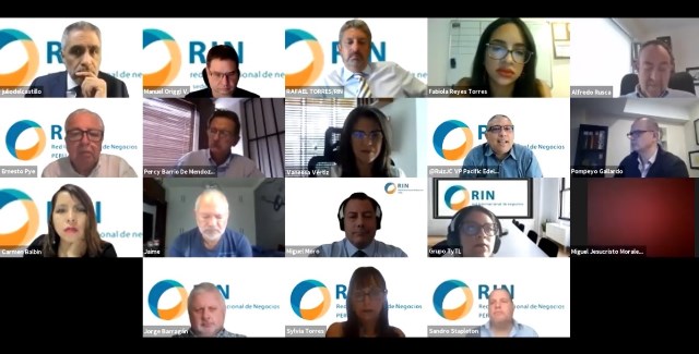La sesión ejecutiva de la Red Internacional de Negocios contó con la presencia de Vanessa Vertiz, Presidenta de ALAFARPE; Luis Fernando Gómez, Presidente Ejecutivo del Consejo Empresarial Colombiano, institución aliada de la RIN; Rafael Torres Morales, CEO de la RIN – SEDE PERÚ; Jenny Andrea González, Directora de la Fundación SOCYA; Manuel Origgi, Director del Comité de Trading de la RIN- SEDE PERÚ; Silvia Lama, Directora Comercial de la RIN SEDE PERÚ; y Luis Fernando Gómez, Presidente Ejecutivo Consejo Empresarial Colombiano.