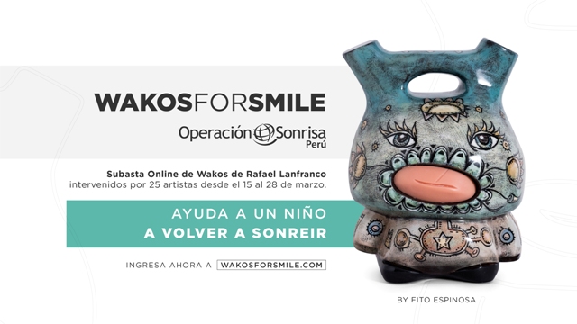 “Debido a la crisis sanitaria que estamos atravesando por la COVID-19, cambiamos la dinámica habitual de “Arte por una Sonrisa”. A partir de la quincena de marzo subastaremos de forma virtual 26 wakos que forman parte de la serie “WakosForSmile”, y que estarán al alcance del público en general. El monto recaudado nos permitirá devolverles la sonrisa a más niños y niñas a través del arte”, comenta la ejecutiva.