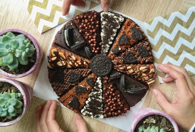 - Pizza brownie: Esta idea es una de las favoritas de muchos. Aquí tendrás que poner tu mezcla de brownie en un recipiente redondo y una vez que esté cocido y decora cada espacio con distintos toppings, pueden ser chispas de colores, chocolate rallado, fudge, manjar blanco, frutos secos o lo que se te pueda ocurrir. Finalmente, tu postre se verá como una pizza llena de colores y lo más importante: deliciosa.