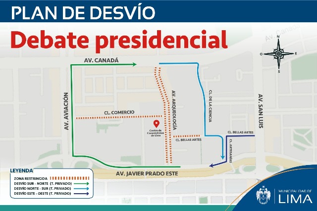 La medida se aplicará de 4 p.m. a 9 p.m., durante las exposiciones de los candidatos, que se llevarán a cabo en el Centro de Convenciones de Lima, en el distrito de San Borja.