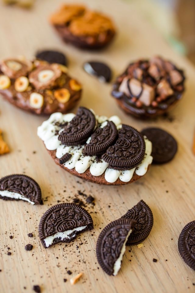 Entre sus alternativas de presentación puedes encontrar los que están rellenos con manjar blanco y almendras, los de salsa de chocolate, cookies and cream y por último los de chocolate Ferrero. Todas estas opciones son pensadas para los amantes del brownie, del dulce y sobre todo para los que apuestan por lo novedoso y creativo.