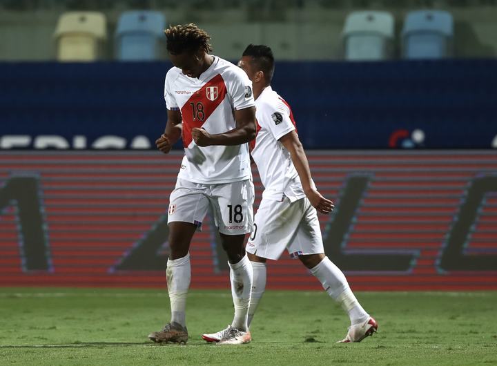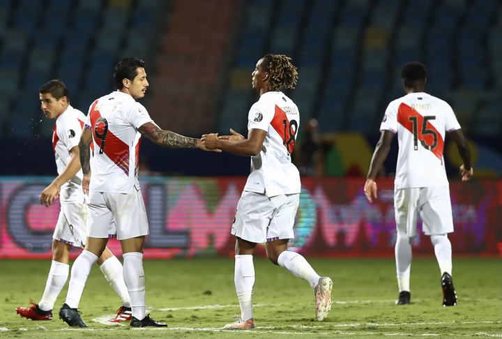 Perú: Pedro Gallese; Aldo Corzo, Christian Ramos, Alexander Callens, Marcos López; Renato Tapia; André Carrillo, Sergio Peña, Yoshimar Yotún, Christian Cueva; Gianluca Lapadula. DT: Ricardo Gareca.