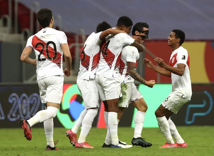 Perú: Pedro Gallese; Aldo Corzo, Anderson Santamaría, Alexander Callens, Marcos López, Sergio Peña, Renato Tapia, Yoshimar Yotún, André Carrillo, Cueva, Peña; Gianluca Lapadula.