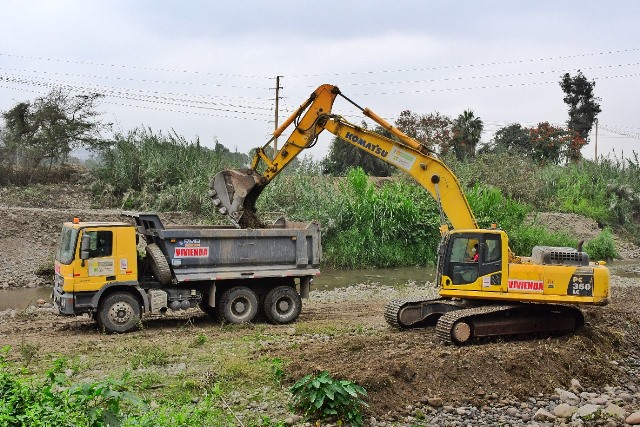 Los trabajos, que incluyen limpieza, conformación de dique y encauzamiento, se ejecutan desde el puente Guayabo y tienen casi un kilómetro de extensión. Para estas acciones se utilizan una excavadora, un cargador frontal y tres volquetes.