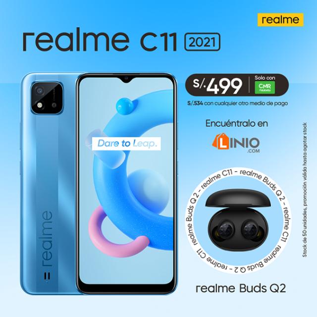 Por promoción de lanzamiento, el usuario podrá adquirir un combo de un realme C11 + Buds Q2 A precios súper atractivos en las tiendas oficiales de la marca en Linio y Mercado Libre.