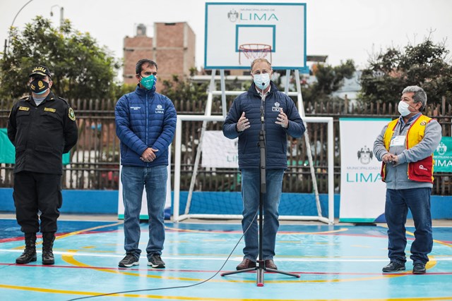 El Alcalde de Lima, Jorge Muñoz, presentó el programa Lima en Movimiento, que permitirá la renovación de 16 Losas Deportivas en el Cercado. Las intervenciones consisten en un pintado lúdico y recreativo, a fin de fomentar actividades con distanciamiento social y respetando los protocolos de bioseguridad.