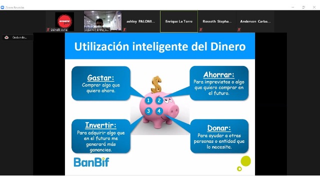 Lima, 26 de Agosto 2021.- Con el objetivo de inculcar buenos hábitos financieros y proveer conocimientos sobre el buen uso del dinero, BanBif brindó dos talleres virtuales sobre Educación Financiera a estudiantes de colegios públicos intervenidos por la Asociación Enseña Perú.