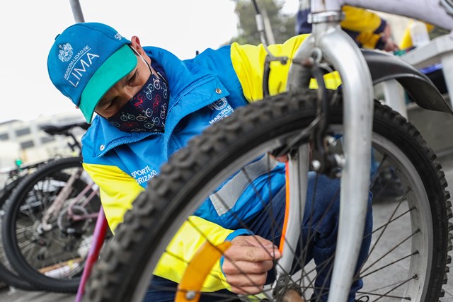 Durante la jornada, los mecánicos de esta área de la comuna limeña, colocaron gratuitamente cintas reflectivas en las bicicletas de 250 ciclistas, que ayudarán a mejorar su visibilidad en las vías. Esto se realizó considerando que su uso es obligatorio, según la Ley 30936, que promueve y regula el uso de la bicicleta como medio de transporte sostenible y donde se indica que la multa por no tener estos elementos reflectivos es de S/176 soles.