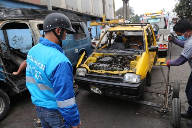 Agentes de Fiscalización, efectivos policiales de la comisaría de San Cayetano y la Diprove ingresaron a la primera cuadra del Jr. Antonio Bazo, donde cuatro autos estaban siendo desarmados por mecánicos informales en la vía pública, para luego vender las partes en el mercado informal.