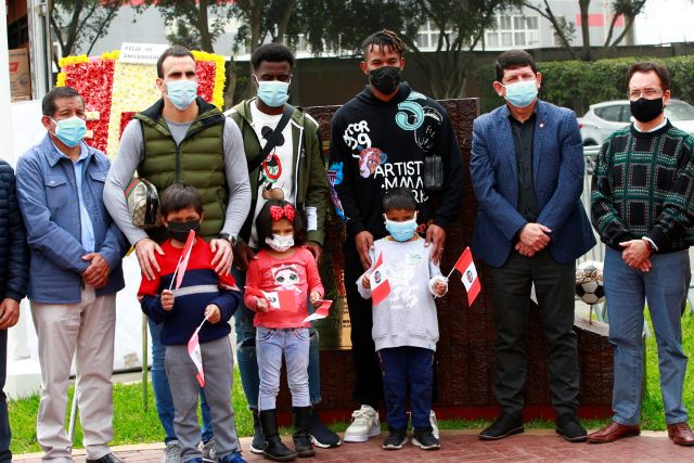 Tras los entrenamientos de este viernes de cara al duelo de las Clasificatorias Sudamericanas ante Uruguay, los seleccionados nacionales Christian Ramos, Carlos Cáceda y José Carvallo estuvieron presentes junto al Presidente de la Federación Peruana de Fútbol (FPF), Agustín Lozano para hacer esta importante entrega a la directora general del INSN de San Borja, Zulema Tomás, quien estuvo acompañada de las madres y niños atendidos en este albergue.