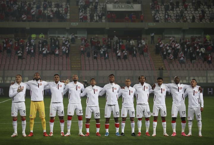 Perú: Pedro Gallese; Luis Advíncula, Alexander Callens, Anderson Santamaría, Marcos López; Sergio Peña, Renato Tapia, Yoshimar Yotún; André Carrillo, Christian Cueva, Paolo Guerrero.