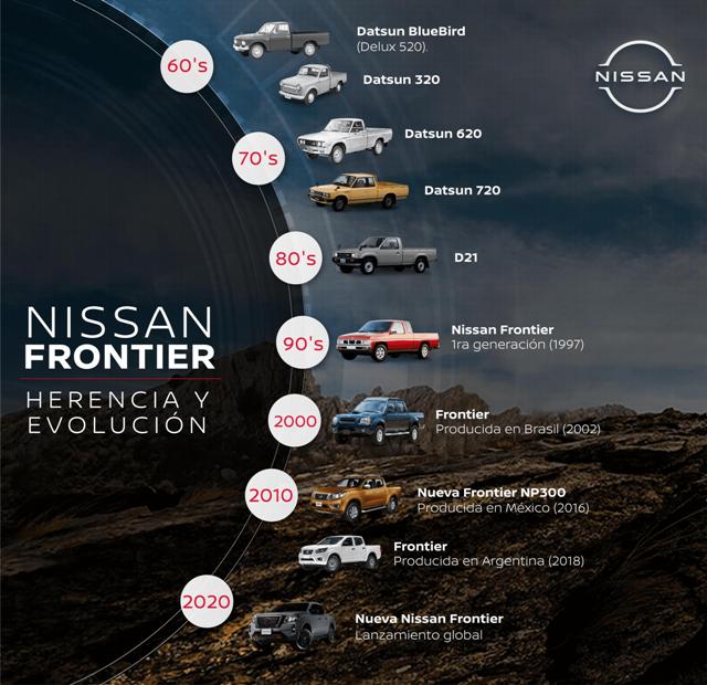 Las primeras generaciones cumplieron un papel muy importante en el progreso y desarrollo de las pickups de Nissan. Desde las Datsun que arribaron al continente americano hasta la actual Frontier, de producción regional en Argentina, cada una aportó la innovación necesaria para convertirla en la pickup que hoy conocemos.