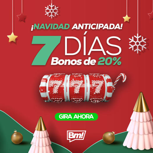 La navidad es para regalar, es por ello que una de las principales casas de apuestas de Latinoamerica, sorprende a sus usuarios con descuentos diarios para duplicar su dinero, con los que podrá jugar en las distintas partidas de tragamonedas. Esta promoción es exclusiva hasta el domingo 12 de Diciembre.