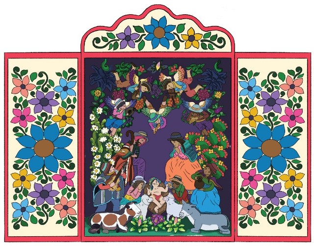 Como parte de los diseños peruanos y con motivo navideño, los usuarios podrán descargar un tradicional retablo ayacuchano, realizado por el artesano Gabriel Ataucusi, quien plasma sus más de 30 años de experiencia en esta inigualable pieza llena de arte, colores y pasión.